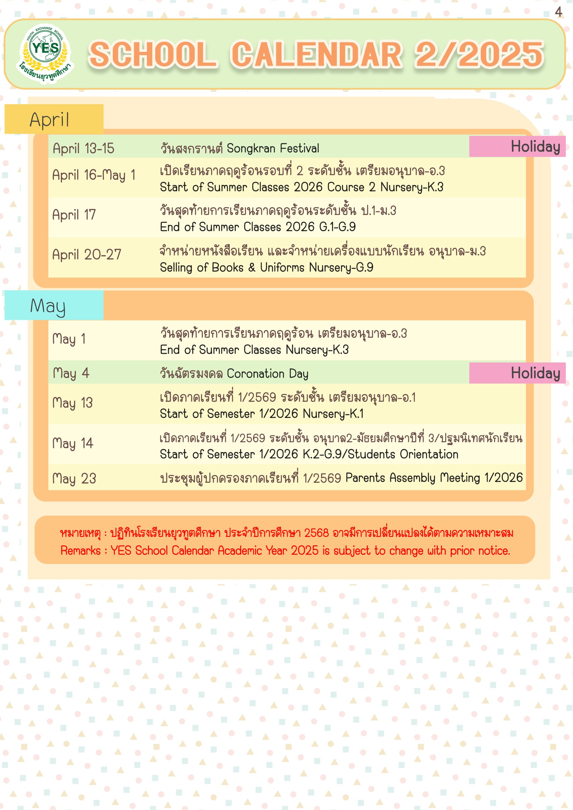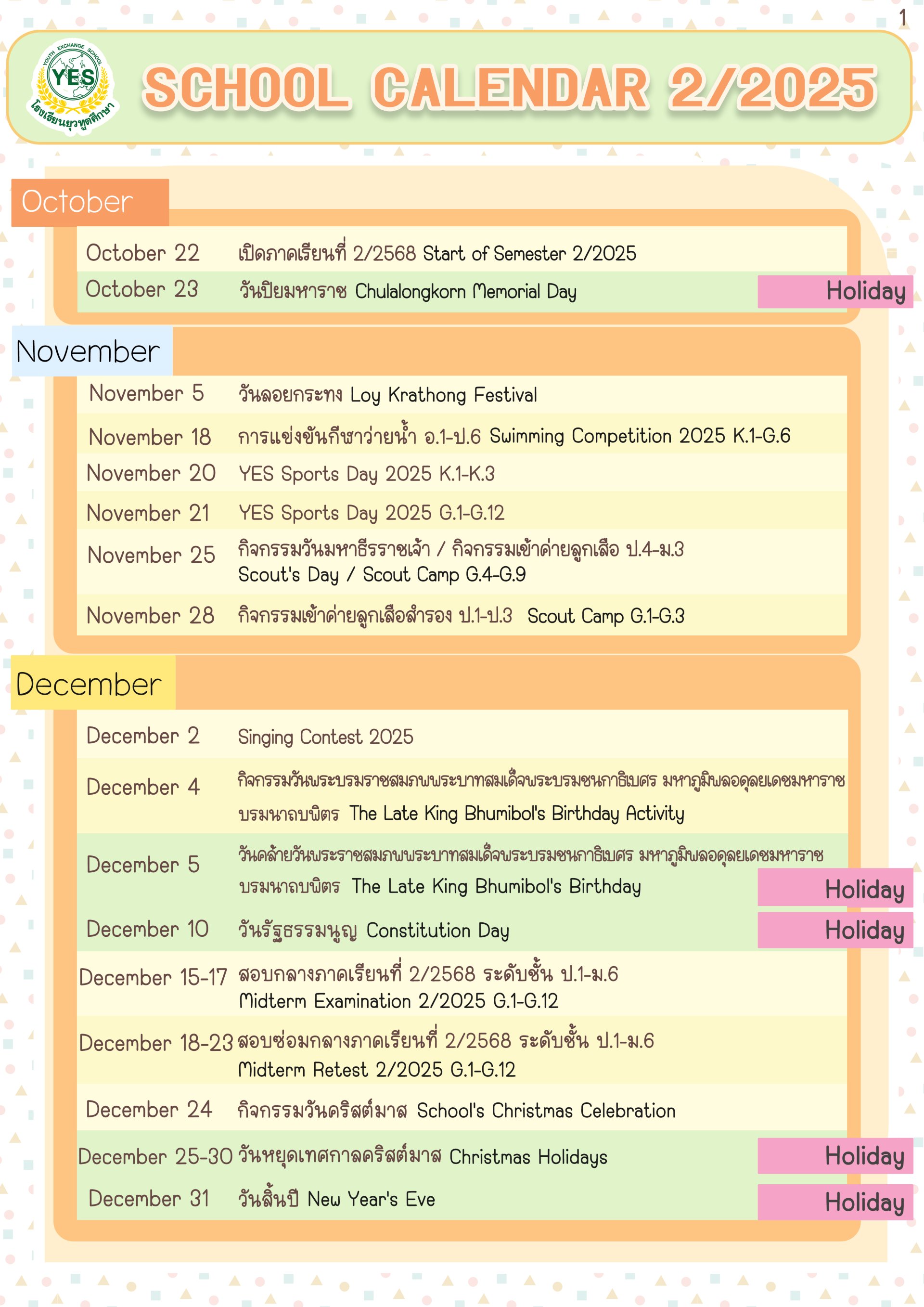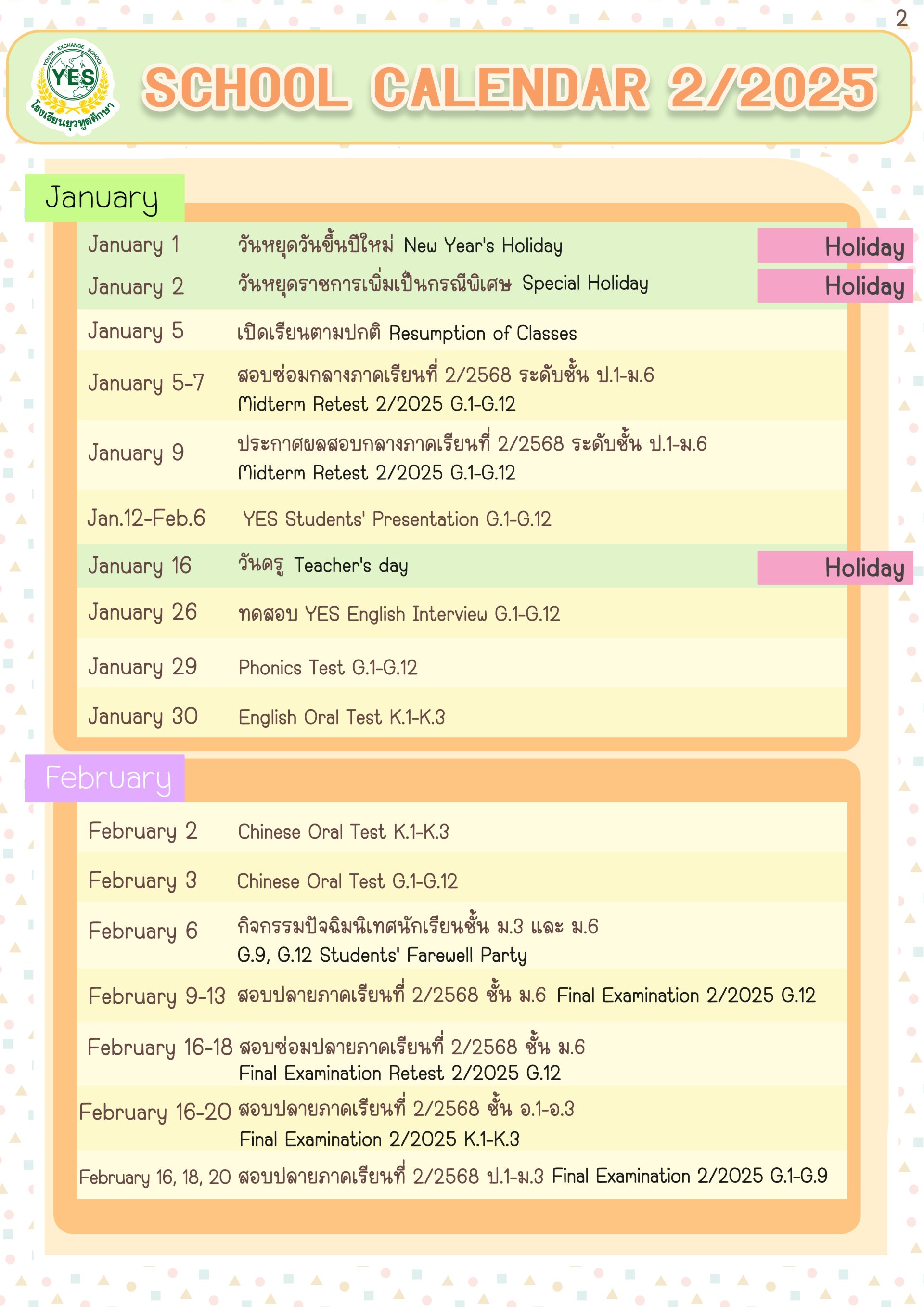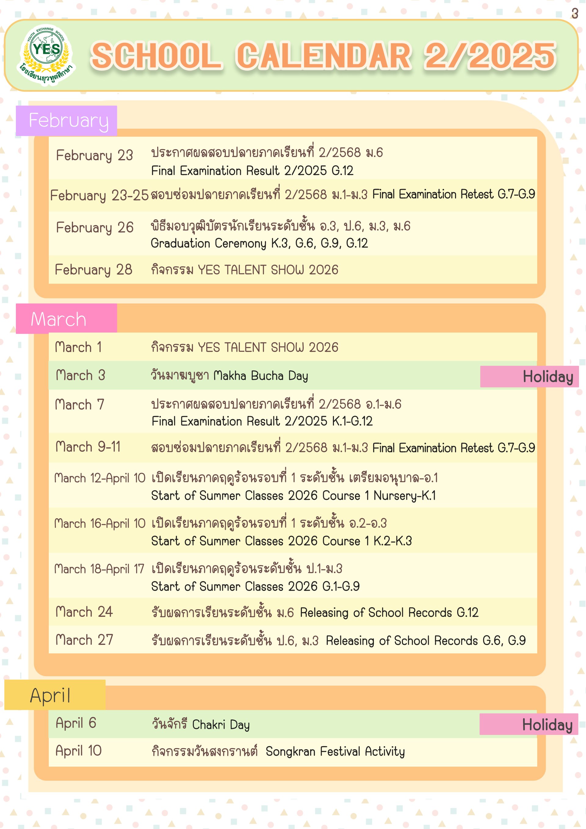 ปฎิทินโรงเรียน